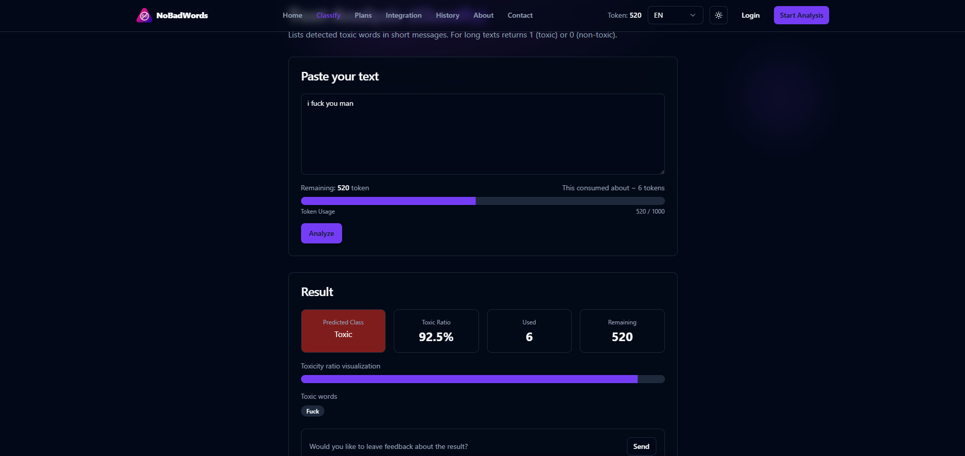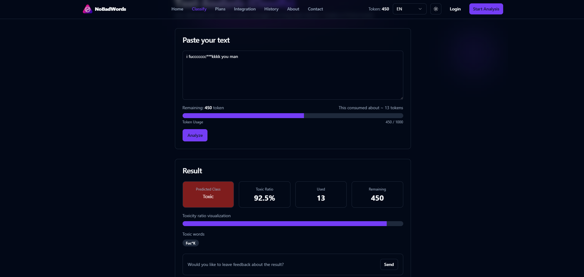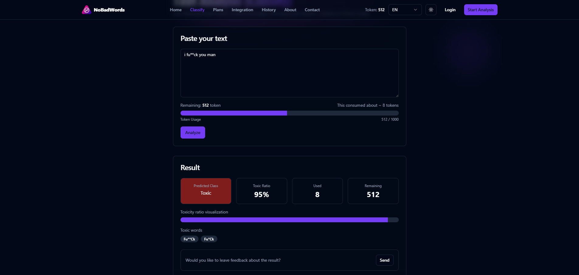 In an era where user-generated content is increasing, maintaining a safe and respectful online environment is becoming increasingly challenging. NoBadWords was developed to meet this critical need by offering an intelligent moderation system that understands context to protect platforms from toxic and inappropriate content.
